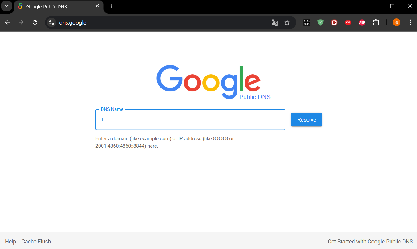 자 보통은 기본 DNS에 8.8.8.8, 보조 DNS에 8.8.4.4를 설정할 것이다. 이것이 무엇일까? 바로 구글 DNS 서버다. 인터넷 브라우저를 켜서 8.8.8.8을 입력해보라.