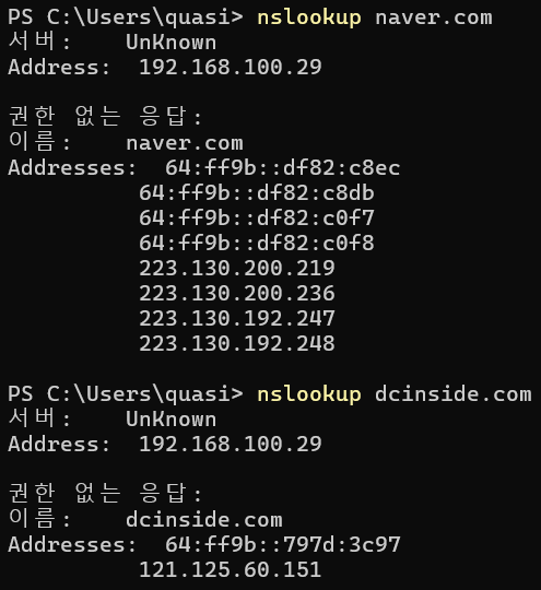 | dcinside.com | 121.125.60.151 | 64:ff9b::797d:3c97 |