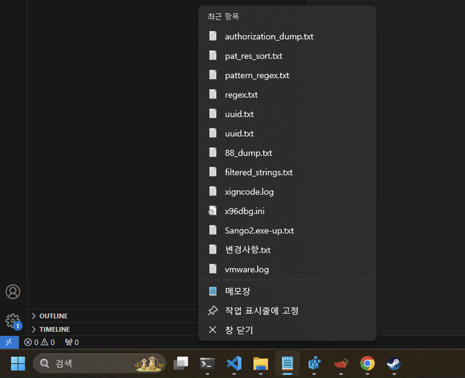 CustomDestinations에는 자주 사용되는 프로그램 목록이나(Frequent)나 하단 작업 목록에 고정한 프로그램이(task) 기록된다.
