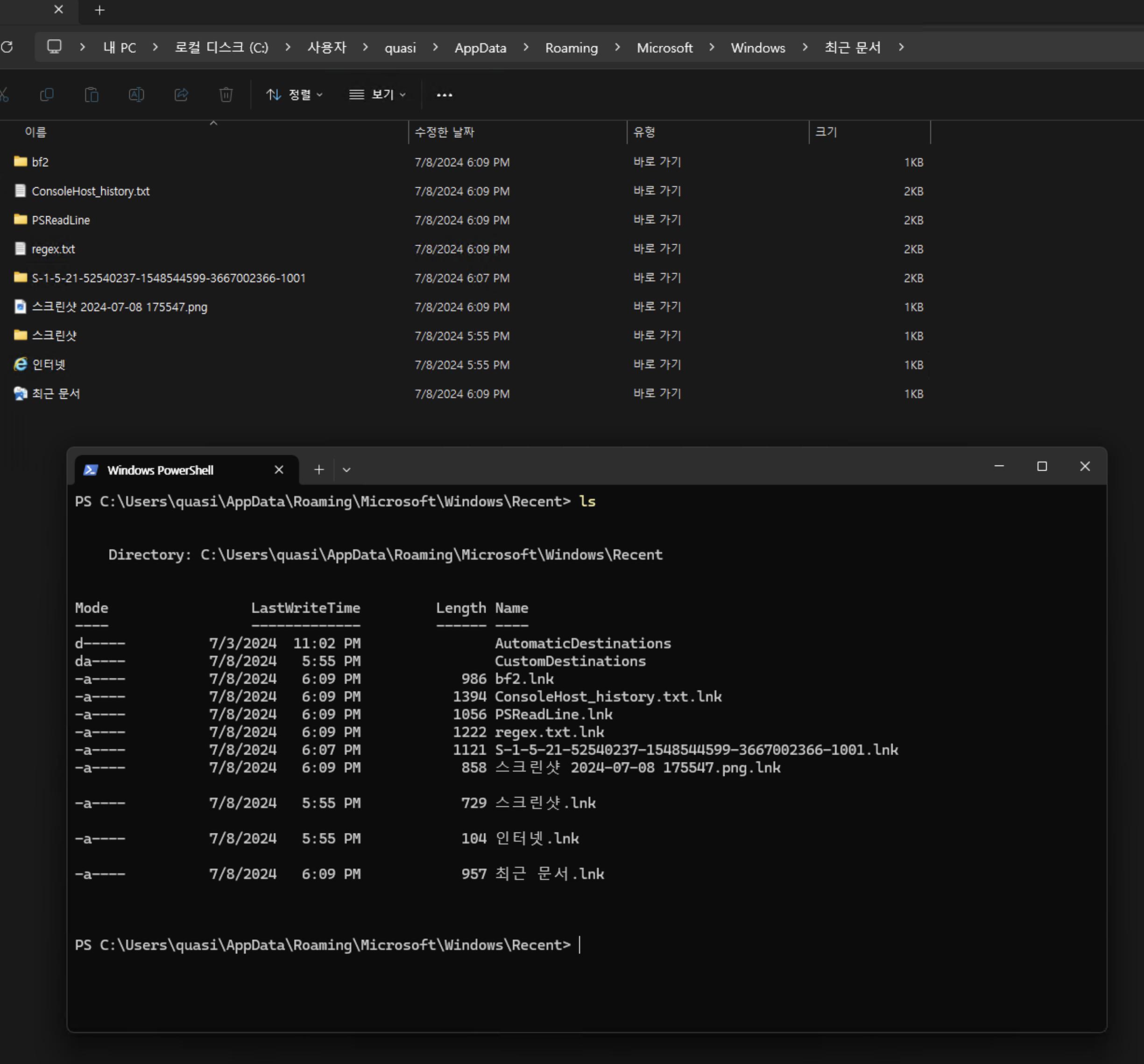AutomaticDestinations와 CustomDestinations는 기록되는 사용자의 행동 유형이 다르다.