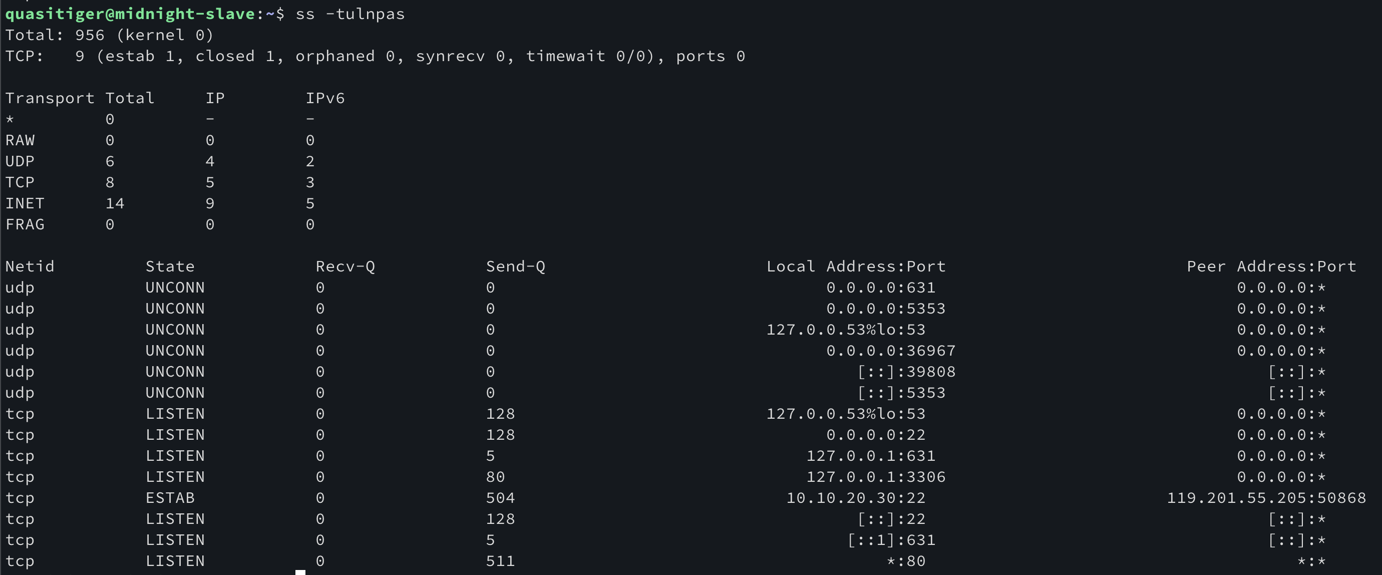 ss 명령에서 추천하는 옵션은 -napstu고 결과는 다음과 같다.