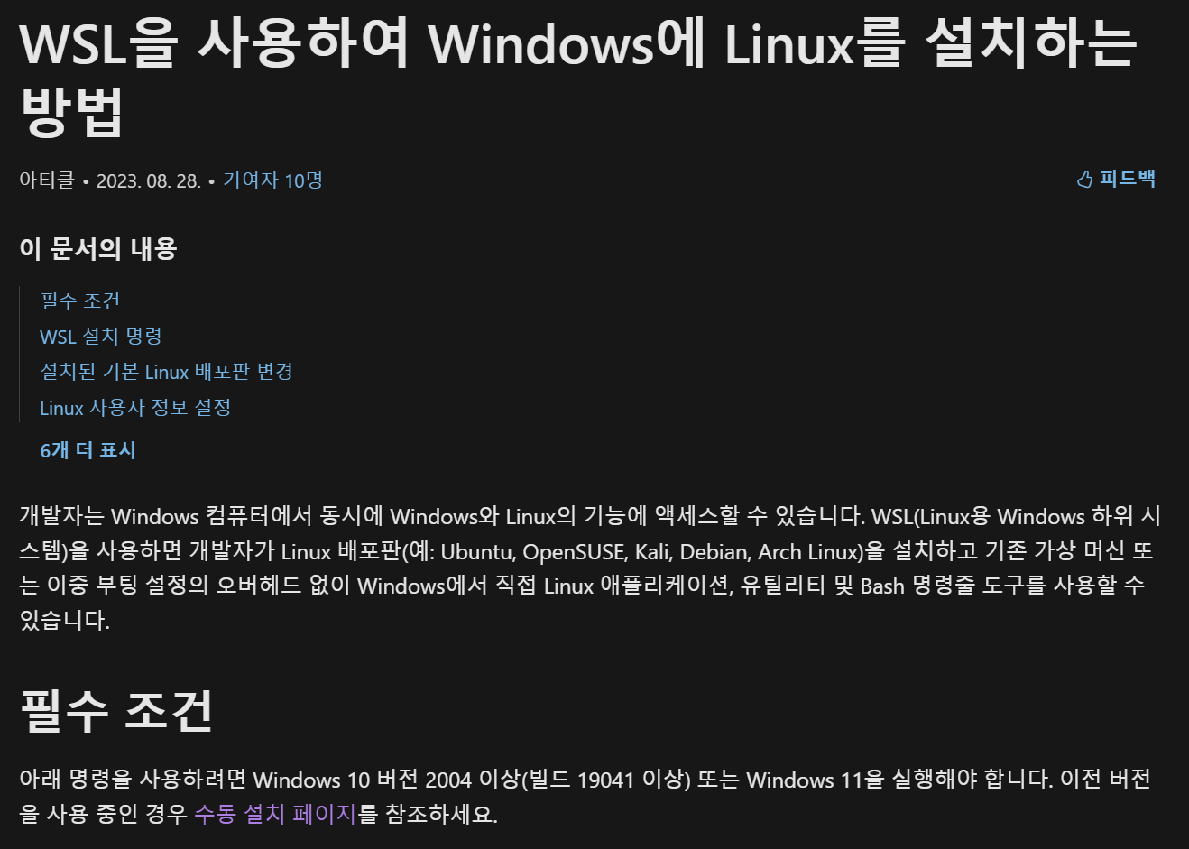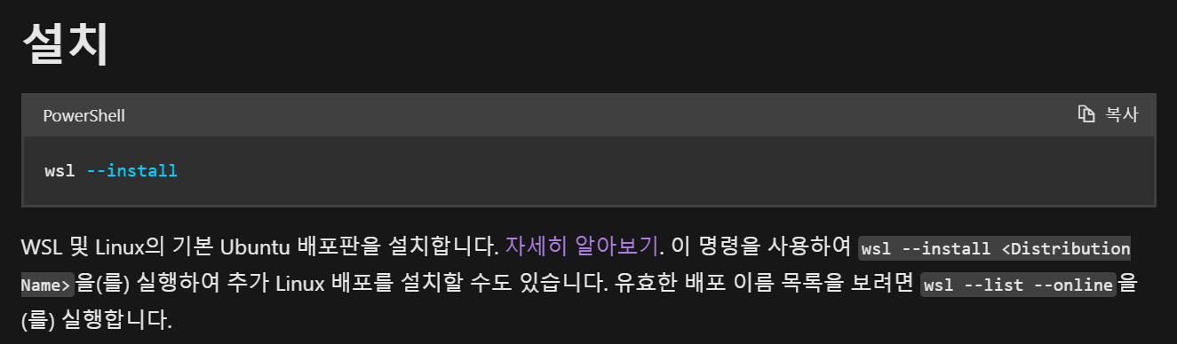 https://learn.microsoft.com/ko-kr/windows/wsl/install