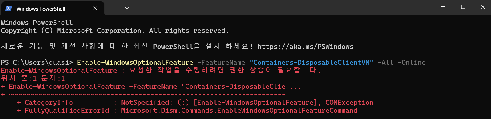 간단하게 파워쉘을 켜서 아래 명령을 입력하면 된다. 아마도 관리자 권한이 필요하지 않을까?