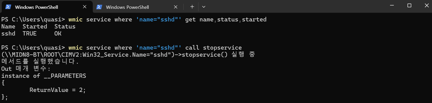 wmic를 통해 서비스 정보를 확인하거나 중지할 수 있다.