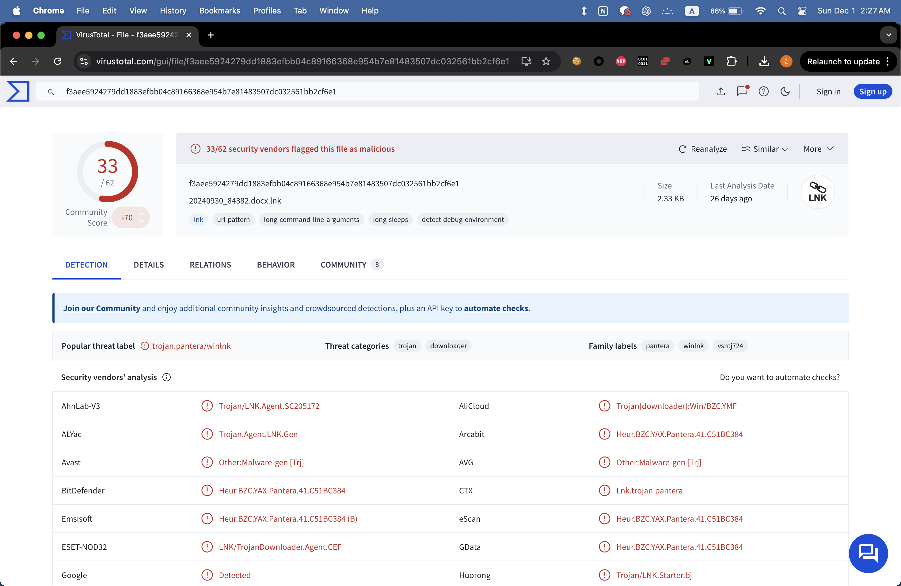 - 또 의심스럽다면 실행하지말고 https://virustotal.com에서 검색해 보는것도 좋은 방법이다.